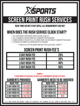 At Xsports, we use Rutland inks as our primary ink for screen printing. However, we also obtain specialty inks from multiple suppliers. Our team only selects the best quality products and conducts comprehensive testing to guarantee the finest prints for our customers.